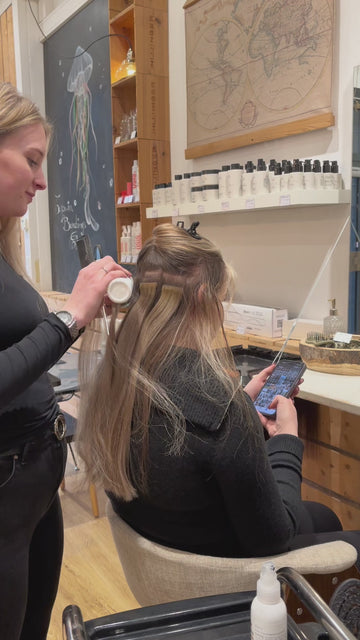 Individuelle Anpassung Unsere Expertinnen setzen deine ausgewählten Tape In Extensions präzise und schonend ein. Dabei achten wir auf die perfekte Platzierung, sodass die Verbindungen unsichtbar bleiben und sich die Extensions harmonisch mit deinem Eigenhaar verbinden.