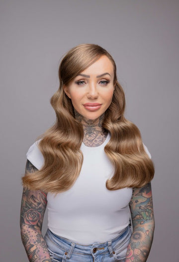 Die Clip Ins werden ganz einfach an den Haaransatz befestigt, indem man die Clips öffnet, sie an der gewünschten Stelle platziert und dann zuschließt. Zuvor kann ein Volumenpuder an den Befestigungspunkten aufgetragen werden, damit die Clip In Extensons gut halten und nicht verrutschen. Genaue Anleitungen zum richtigen Einsetzen findet ihr auf unserem YouTube-Kanal.