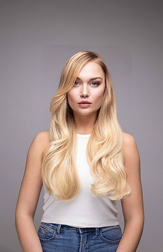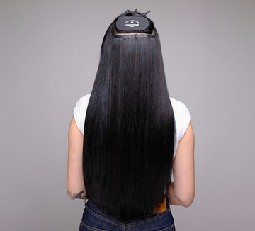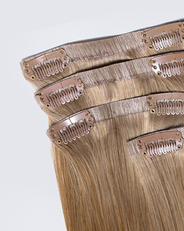Temporäre Haarverlängerung mit sechs Echthaarteilen, die mithilfe kleiner Clips in wenigen Minuten angebracht oder wieder entfernt werden können. Ideal für sofortige Veränderung von Länge und Volumen.