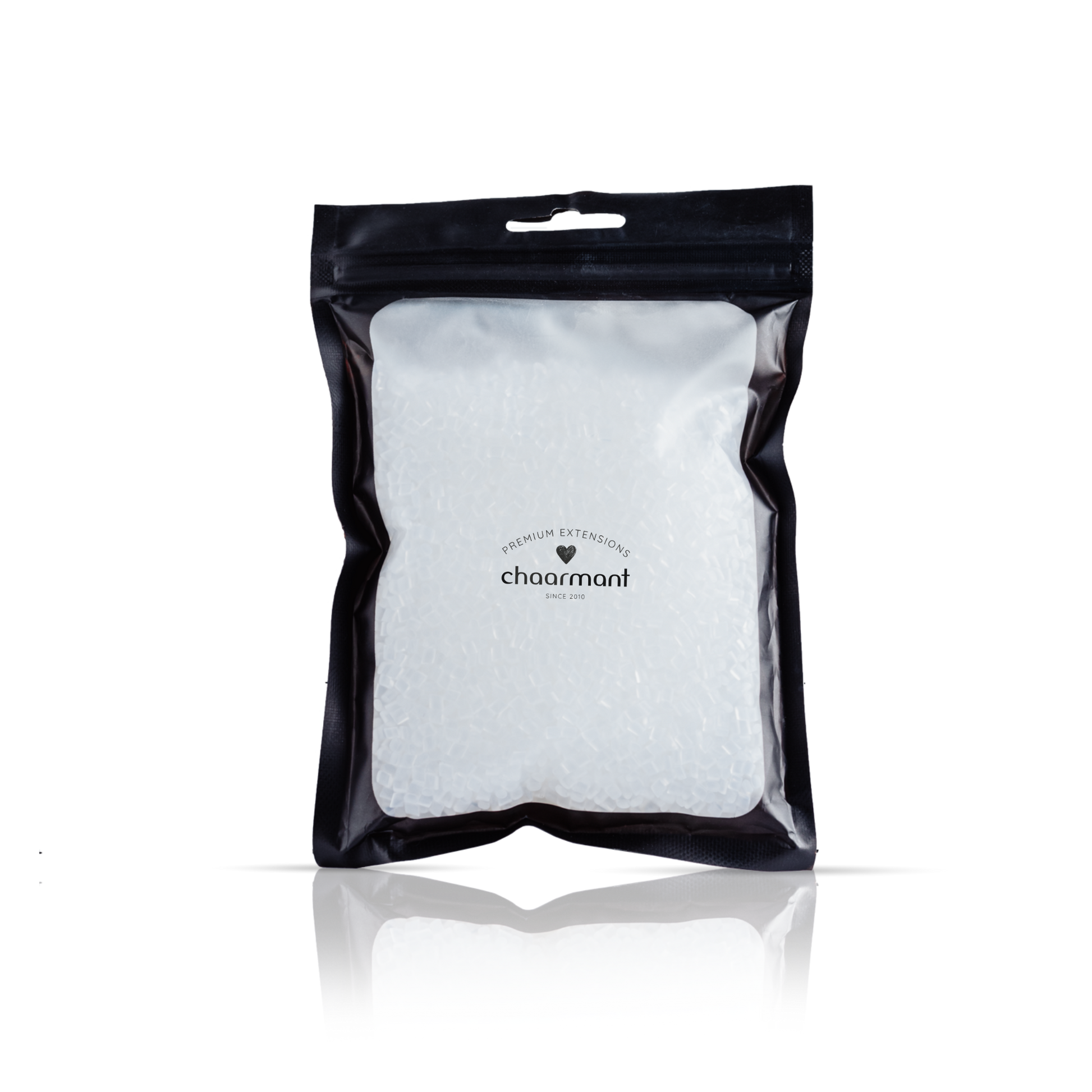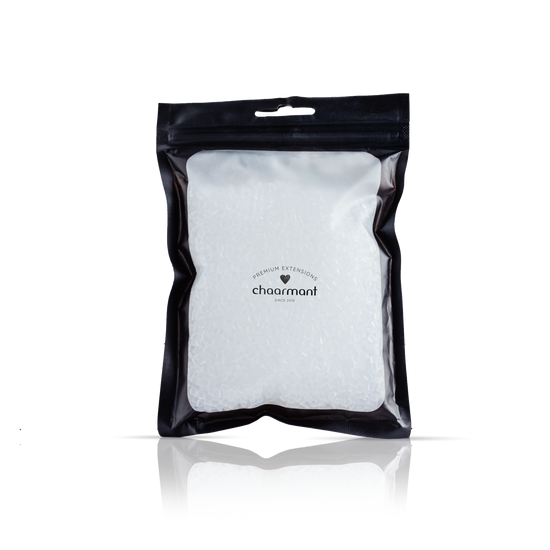 Das chaarmant Bonding Granulat Transparent steht für Premiumqualität beim Re-Bonden von Extensions. Jede Körnung ist gleichmäßig geformt, schmilzt ohne Fädenbildung und lässt sich einfach verarbeiten. Die wasserabweisende Formulierung sorgt für zuverlässigen Halt und langlebige Verbindungen. Es erfüllt höchste Standards für professionelle Ergebnisse im Salon oder zu Hause.