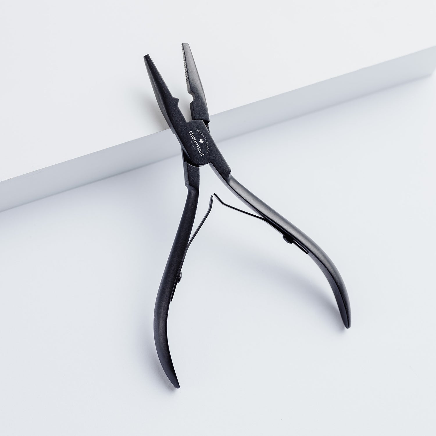 Die chaarmant Bonding Zange Profi vereint elegantes Design mit langlebiger Qualität. Gefertigt aus mattschwarzem, rostfreiem Edelstahl ist sie widerstandsfähig gegen Abnutzung und Korrosion und bleibt auch bei täglichem Einsatz zuverlässig. Der integrierte Doppelfeder Mechanismus ermöglicht ein sanftes und kraftsparendes Arbeiten. So erfüllt die Zange höchste Qualitätsstandards und liefert professionelle Ergebnisse im Salon ebenso wie zu Hause.