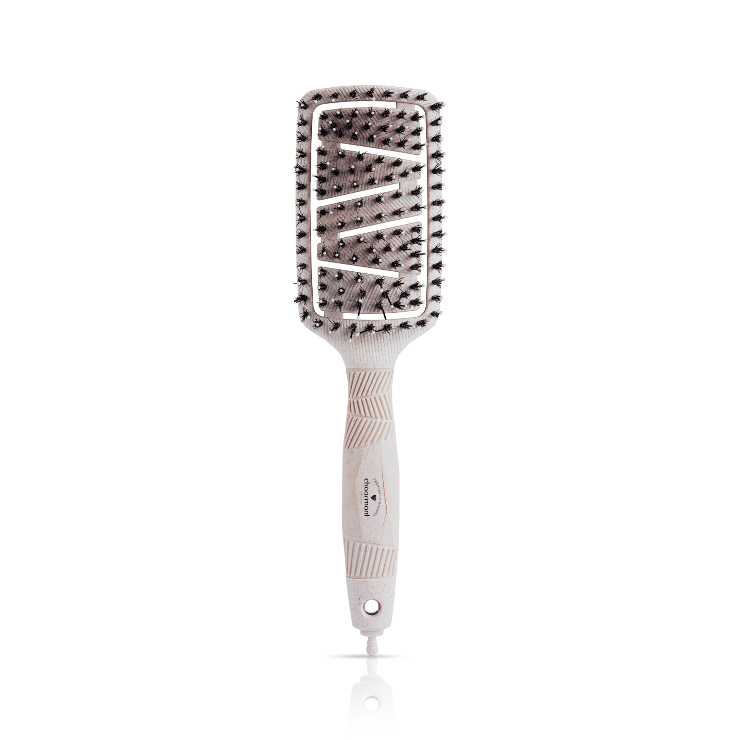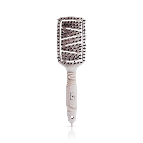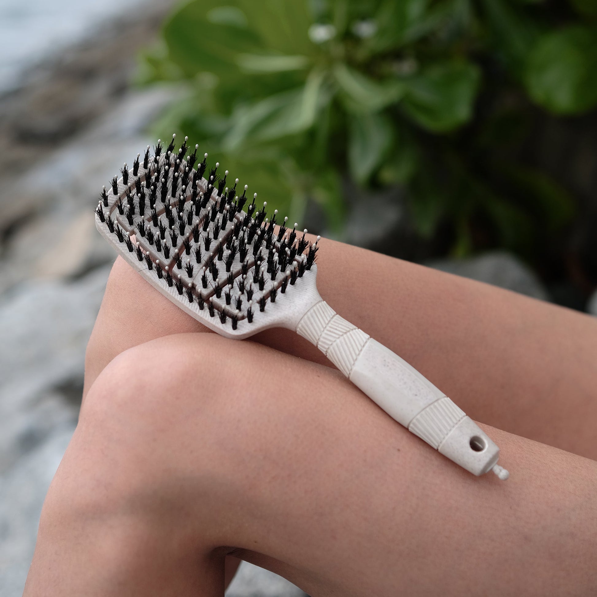 • Kombination aus Nylonborsten (sanft entwirrend) und Wildschweinborsten (natürlicher Glanz)