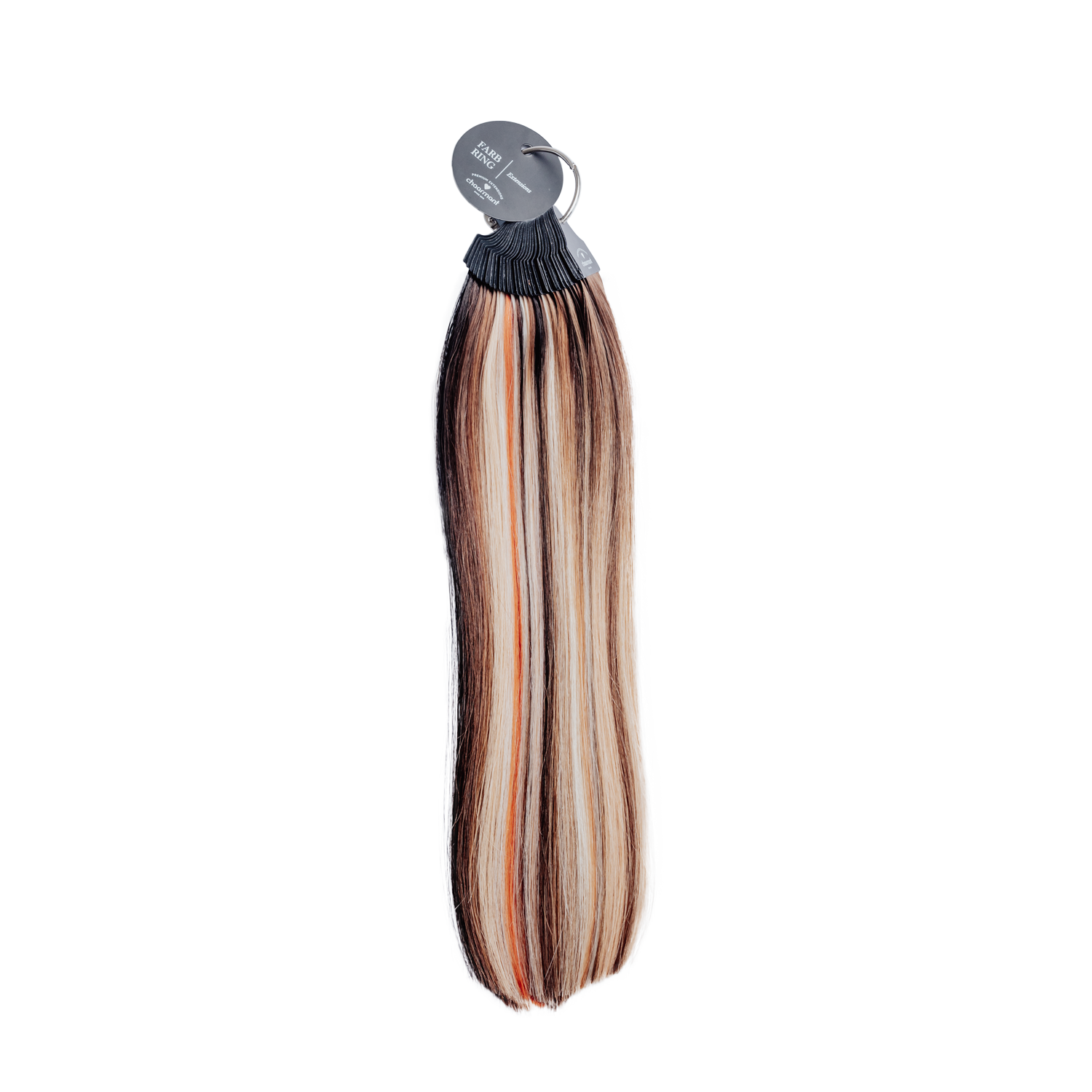 Der chaarmant Extensions Farbring besteht aus 100 % Echthaarsträhnen, die die Farben naturgetreu wiedergeben. So kannst du sicher sein, dass die ausgewählte Nuance im Original ebenso aussieht wie am Ring.