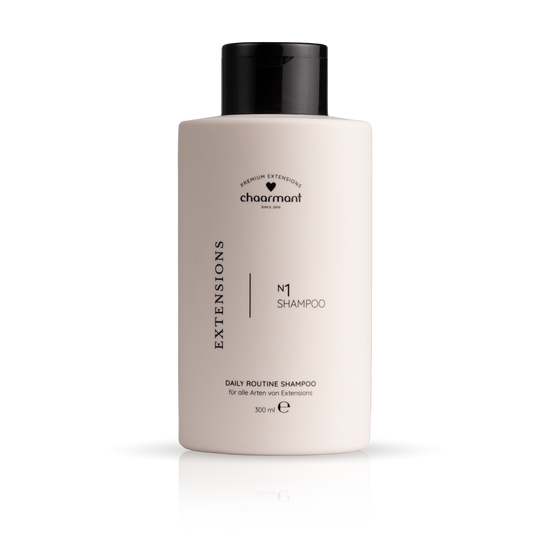 Das chaarmant ᴺ1 Daily Routine Shampoo ist vegan, nachhaltig verpackt und frei von tierischen Inhaltsstoffen. Es eignet sich für alle Haartypen und Haarfarben und ist die ideale Basis für eine schonende, tägliche Pflege von Eigenhaar und Extensions.