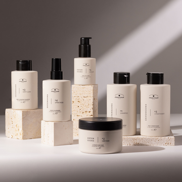 Bürste den Extensions Zopf mehrmals täglich mit der chaarmant Extensions Bürste. Beginne immer an den Spitzen und arbeite dich nach oben vor. Ein paar Tropfen chaarmant ᴺ5 Daily Oil Elixir spenden Feuchtigkeit, reduzieren Frizz und verleihen strahlenden Glanz.
